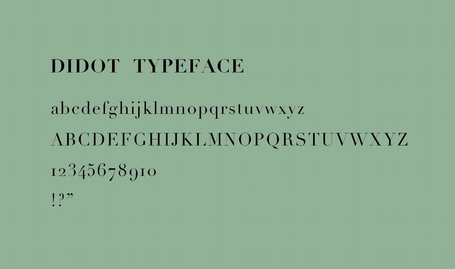 I selected Didot as the typeface used throughout this booklet because of its minimalistic look. It's clear form and fine strokes allow for easy legibility and a sort of calmness across all pages within the booklet. This look furthermore helps viewers understand the context of the displayed haiku.
