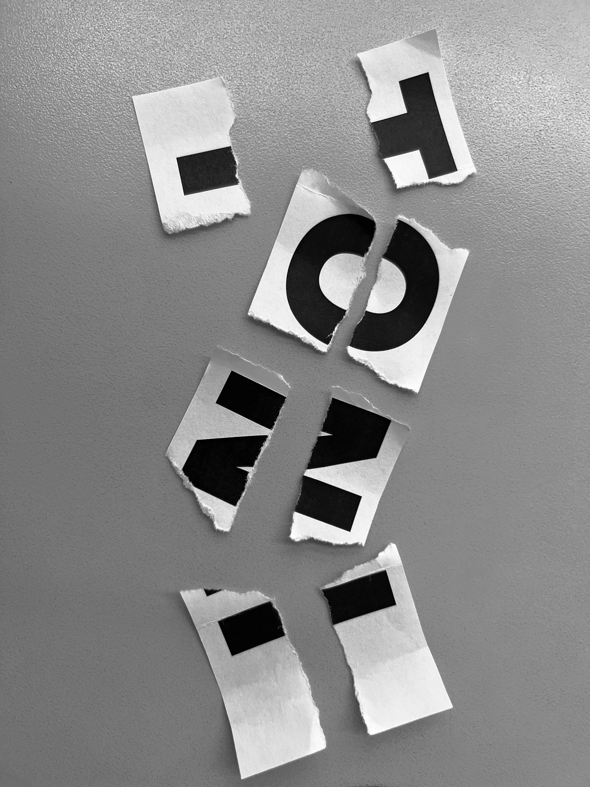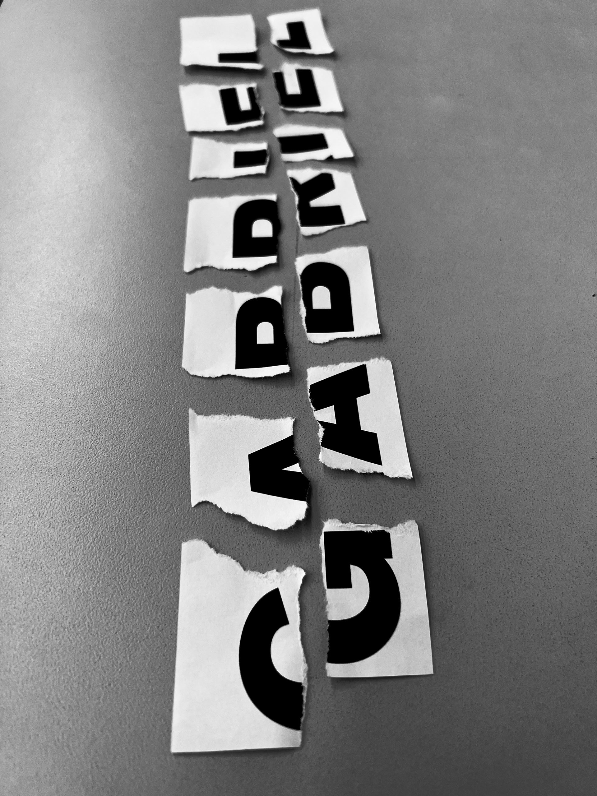 By using printed out type, I was able to explore studies of possible compositions for my final typographic posters. Rips and tears along with overlapping and attention to focal points helped me decide how I wanted to arrange the letterforms of the writers names across all three posters.